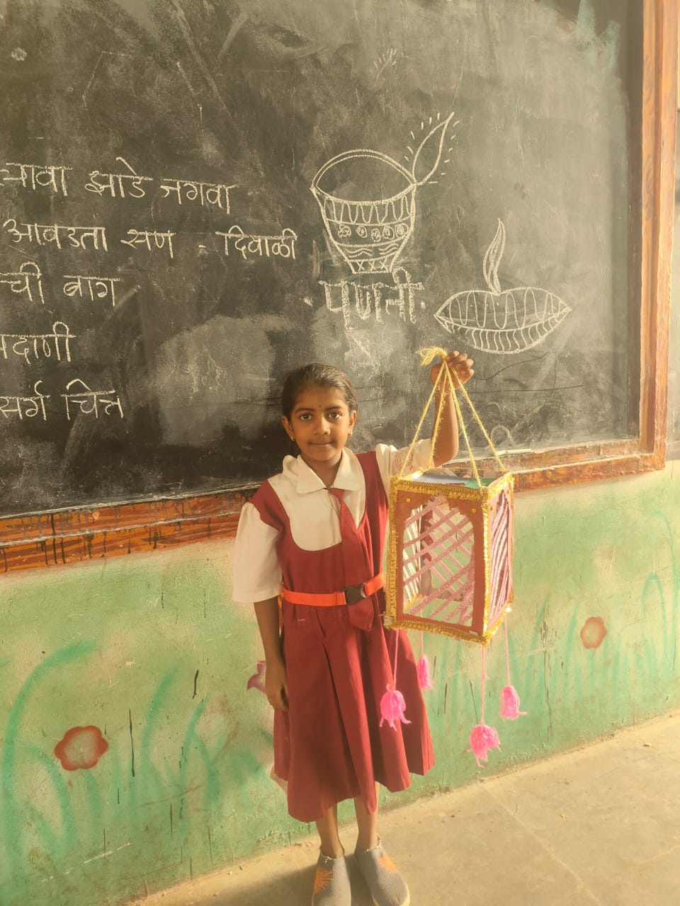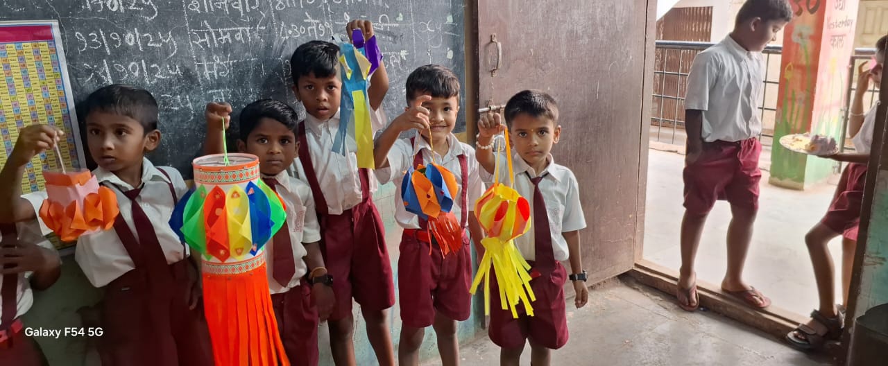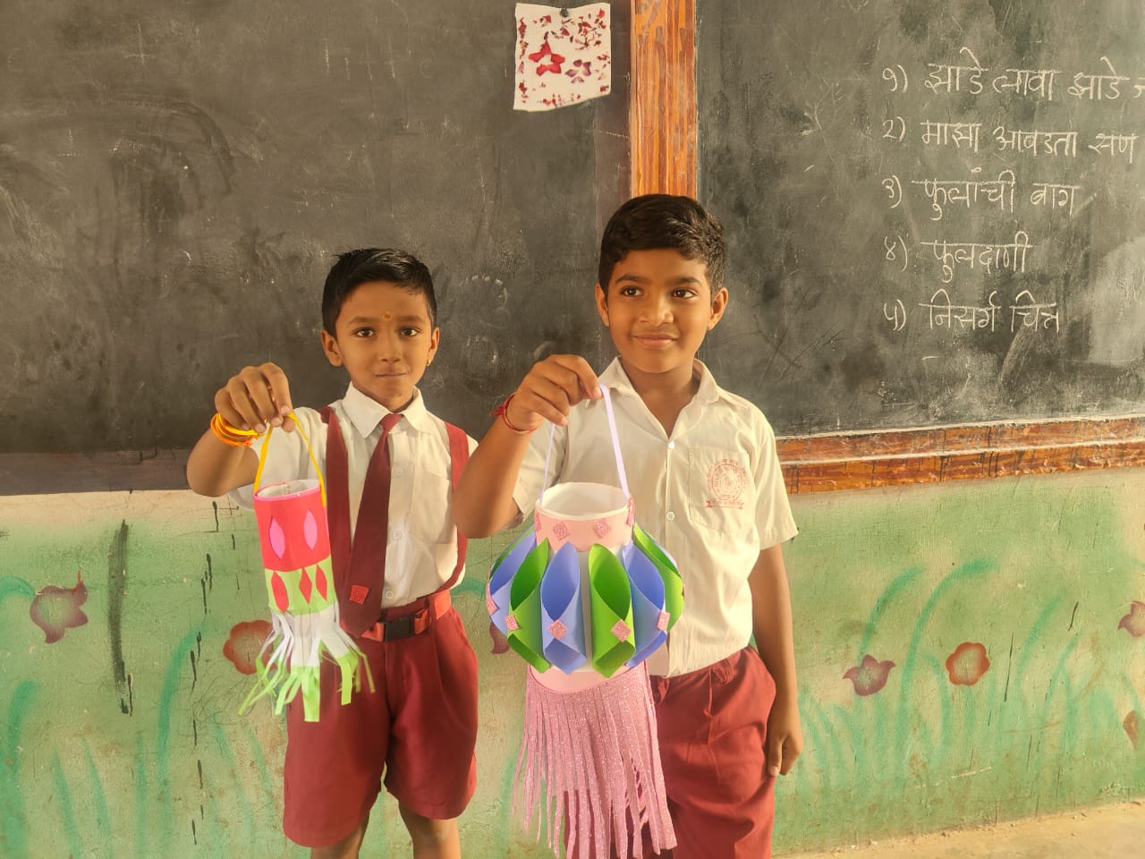 यासाठी शिक्षकांनी व पालकांनी अगोदरच विद्यार्थ्यांना प्रशिक्षण दिल्यामुळे अगदी पहिलीपासून चौथीपर्यंतच्या विद्यार्थ्यांनी आकाश कंदील आणि भेटकार्ड तसेच विविध प्रकारची चित्रे ही अतिशय सुंदर प्रकारे काढले होती.
